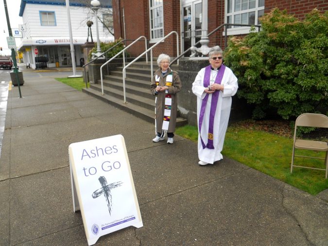Ashes to Go on Ash Wednesday (3/5/2014) at the Montesano Post Office